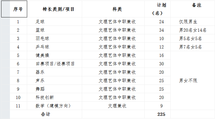 (三)特長(zhǎng)類(lèi)項(xiàng)目與招生計(jì)劃