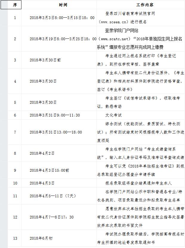 四川建筑職業(yè)技術(shù)學(xué)院2018年單獨(dú)招生時(shí)間安排表