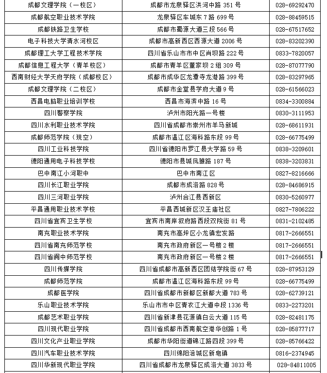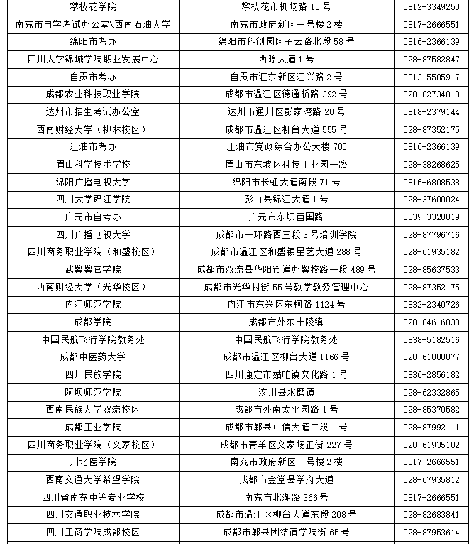 四川省NCRE考點信息