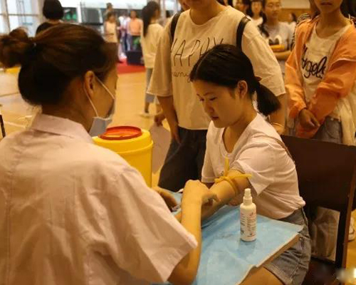 2018年7月9日上午八點(diǎn),四川城市技師學(xué)院在校藝體館對(duì)2018級(jí)新生進(jìn)行體檢,體檢包括查血,量血壓,測(cè)量身高體重等項(xiàng)目。
