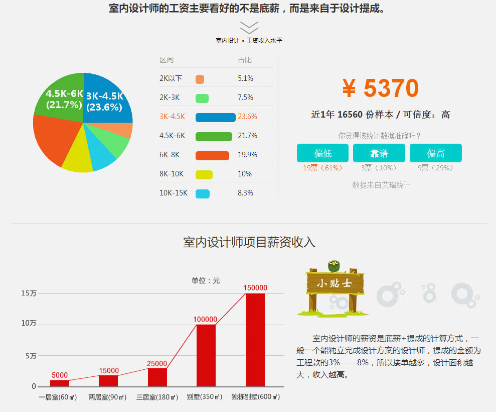 設(shè)計(jì)師收入來(lái)源豐富,薪酬結(jié)構(gòu)是“底薪+業(yè)務(wù)提成+設(shè)計(jì)提成”,年薪十萬(wàn)元并不遙遠(yuǎn)。