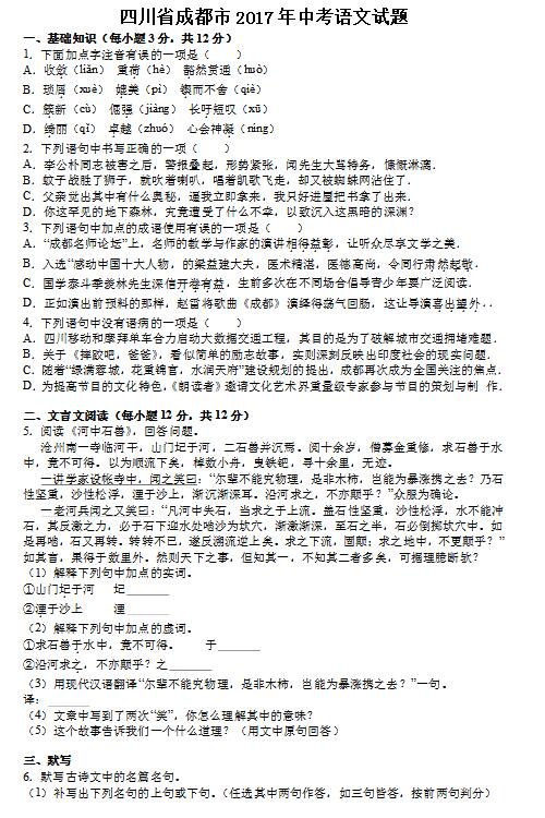初升高考試——成都中考語文卷一