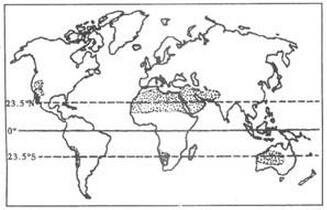 第42題簡答 讀世界熱帶沙漠分布圖,分析回答。